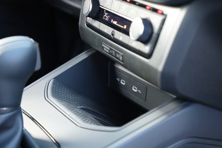 Interiér sa na prvý pohľad vôbec nezmenil, no zdanie klame. Nové látkové poťahy sedadiel s vylisovanou textúrou, čierna stropnica, volant potiahnutý perforovanou kožou, voliteľný 10,25- palcový digitálny prístrojový štít, ktorý mal aj testovaný exemplár, posúvajú zážitok z interiéru na vyššiu úroveň. Novinkou je tiež chladené bezdrôtové nabíjanie mobilu s výkonom 15 W.