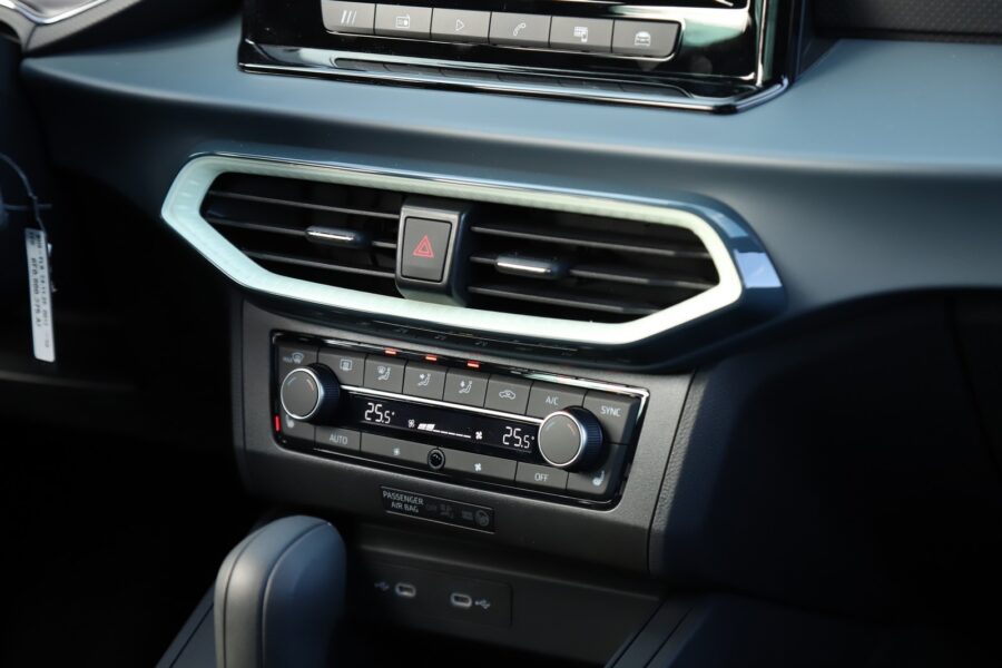 Ja som nesmierne rád, že v rámci faceliftu SEAT nechal pôvodný ovládací panel klimatizácie s otočnými ovládačmi a fyzickými tlačidlami a ani volič prevodovky nenahradil otočným voličom, tlačidlami, kolískovým prepínačom alebo nejakým podobným nezmyslom. Pádla na manuálne radenie nie sú k dispozícii, ale po presunutí voliča doprava som mohol radiť manuálne. V testovanej verzii je hlavica síce plastová, no je fakt príjemná na dotyk. Mimochodom, po novom si aj v „najzákladnejšej“ verzii môžete dopriať automatickú dvojzónovú klimatizáciu Climatronic.