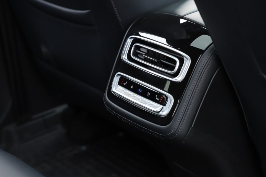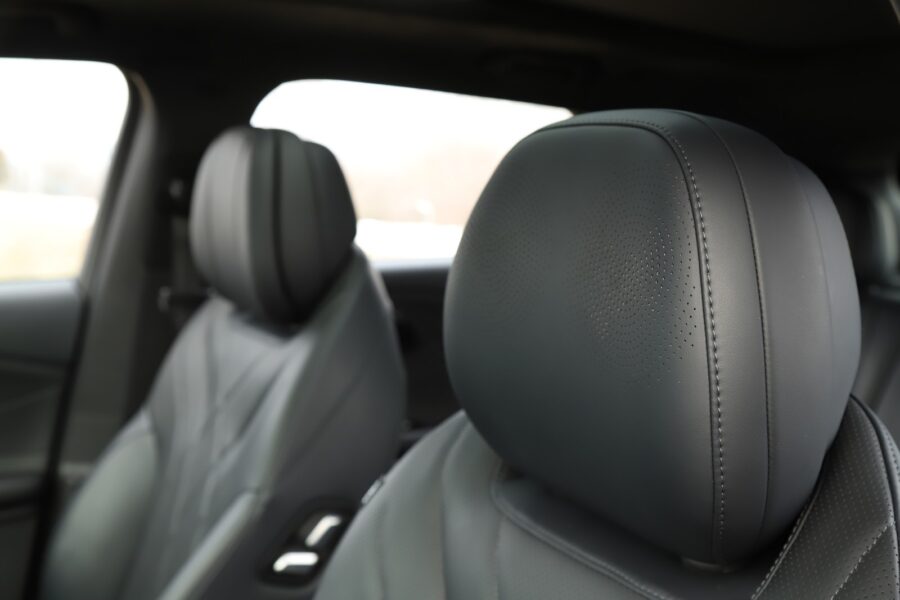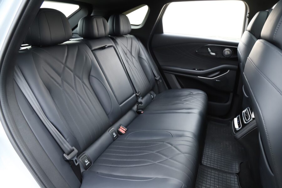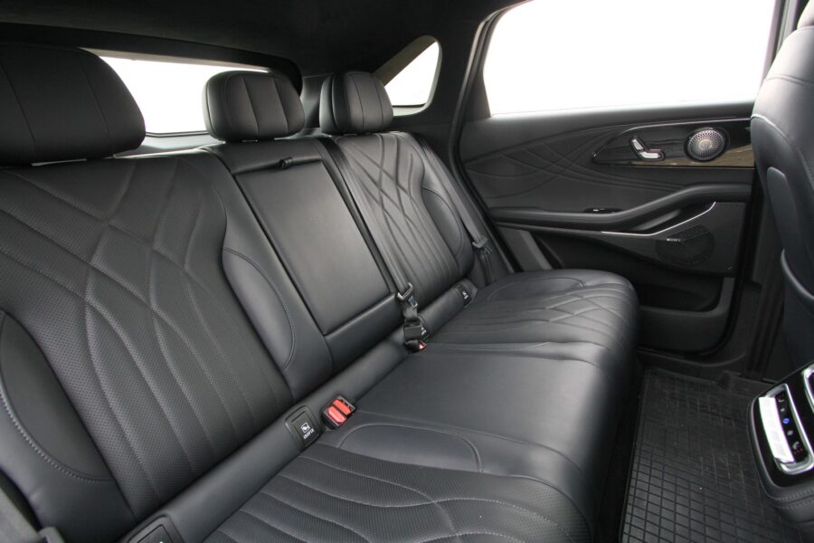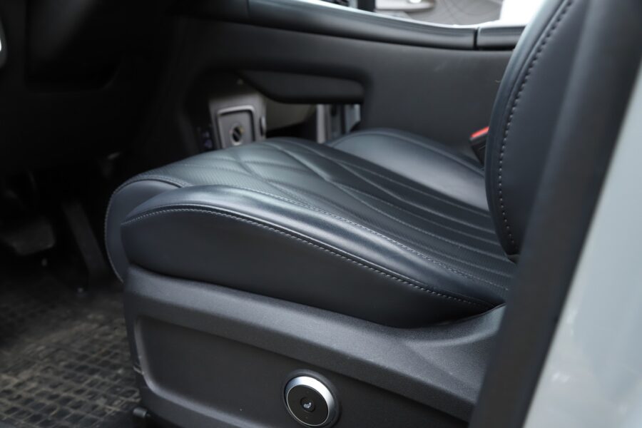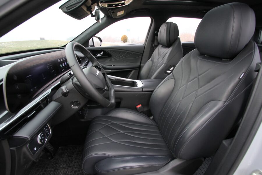 Pocity sú jedna vec, reálne hodnoty druhá. A tu, žiaľ, narazí kosa na kameň. Sedadlá sú totiž úzke, majú krátke sedáky a to vo veľkej miere limitovalo môj komfort. Na túto triedu auta sú predné sedadlá absolútne poddimenzované, pritom interiér je dostatočne veľký na to, aby sa tam zmestili „poriadne“ sedadlá. Na ich obranu slúži, že sú vyhrievané, ventilované a majú aj masážnu funkciu. Samotný posed zodpovedá SUV charakteru auta, aj v najnižšej polohe sedíte pomerne vysoko. Preto je nad hlavou pomerne málo miesta, hoci ja som tento deficit nepociťoval. Zaujímavá je aj poloha volantu, ktorý je na európske pomery pod nezvyklým uhlom. Ďalšia vec je, že pre mňa, keďže sedávam nalepený na volant, je stredová lakťová opierka trochu viac vzadu, než by bolo ideálne.