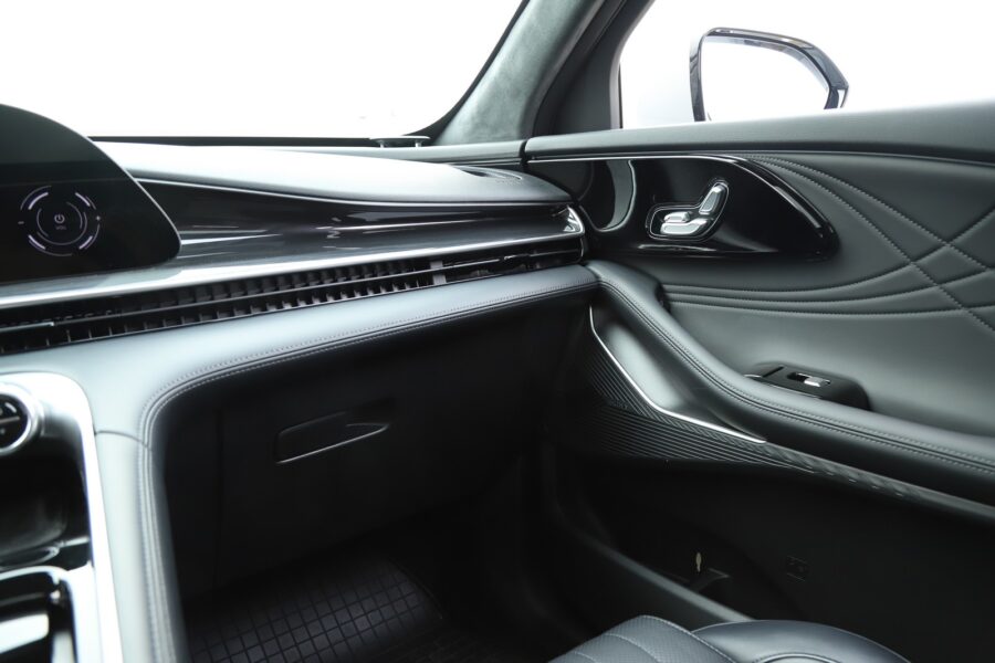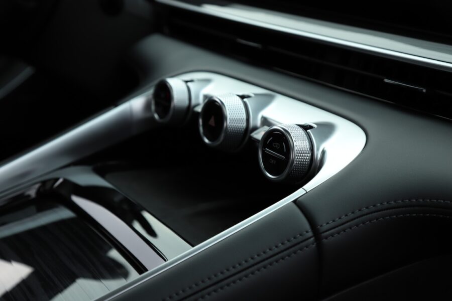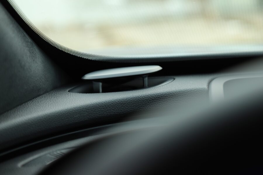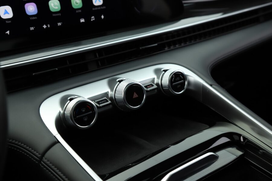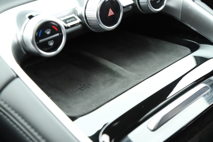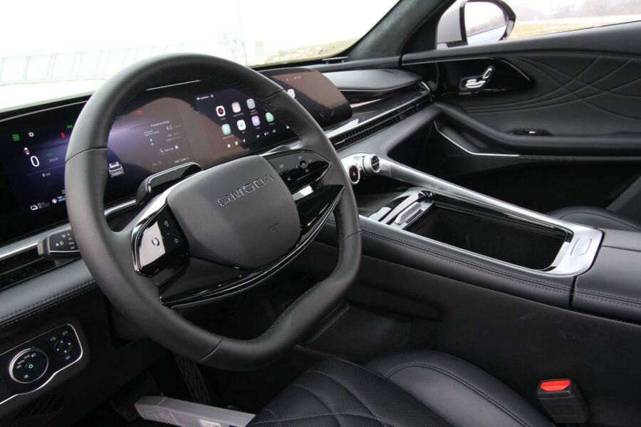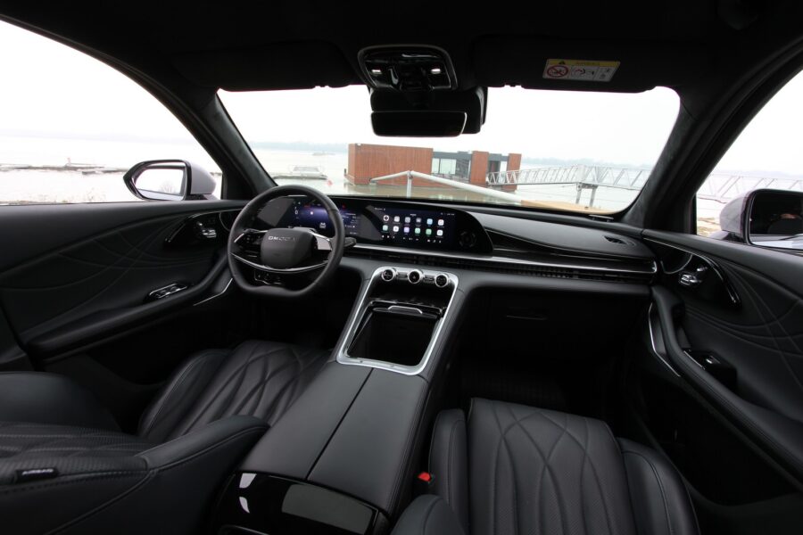 V interiéri vás zaujme zakrivený širokouhlý displej s uhlopriečkou 25,6 palca, mohutný a vysoký stredový tunel, ktorý plynule prechádza do prístrojovej dosky, ale absolútnu dominanciu na seba preberá trojica otočných ovládačov. Nielen preto, že sú veľké a pekne spracované, ale aj preto, že dnes už takéto – a vlastne žiadne – ovládače nevídame. Namiesto nich máme bezduché displeje.