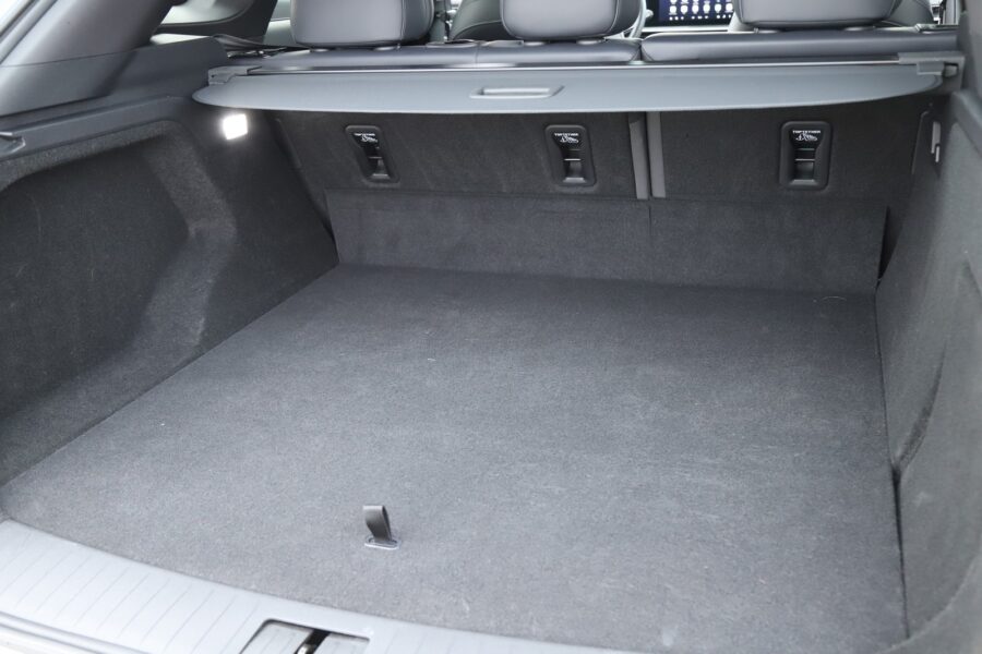 Samotný hybridný systém funguje tak, že hlavnú úlohu v pohone zohrávajú elektromotory, aj spomedzi nich má väčšiu úlohu zadný. Pri ustálenej rýchlosti totiž ženie auto dopredu iba on. V záujme stability a neochvejného záberu na akomkoľvek povrchu sa však aj pri malom pridaní plynu okamžite pridá predný elektromotor. Benzínový motor prioritne iba vyrába elektrinu, ale prostredníctvom trojstupňovej prevodovky sa dokáže zapojiť aj priamo do pohonu. A práve vtedy občas môžete cítiť spomínané jemné seknutie. Ale nedával by som tomu veľkú váhu, bežne si to totiž ani nevšimnete.