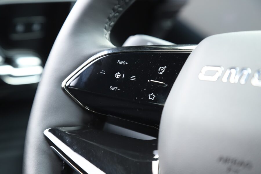 Omoda 9 má štandardne podvozok s adaptívnymi tlmičmi s troma úrovňami tuhosti – Sport, Stredná a Normálna. Tá normálna je najmäkšia a zabezpečuje fantastickú plavnosť, ktorú som miloval. Pravda, krátke nerovnosti v tomto režime nedokáže celkom efektívne odfiltrovať, ale ten komfort mi stál za to. Pre mnohých bude možno atraktívnejšia stredná úroveň tuhosti, ktorá zvláda tlmenie krátkych nerovností lepšie, ale ešte stále si zachováva vysokú mieru komfortu. Ani tretia úroveň nie je príliš tvrdá, hoci ten rozdiel je citeľný. Zamrzí, že tuhosť meníte cez displej a nestačí ťuknúť na ikonu s príslušným menu, aby sa vám vyrolovali jednotlivé úrovne tuhosti, ale najprv musíte trafiť miniatúrny virtuálny gombík ako na mobile, čo je za jazdy takmer mission impossilble.