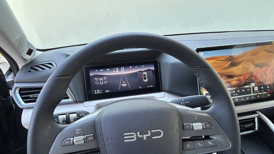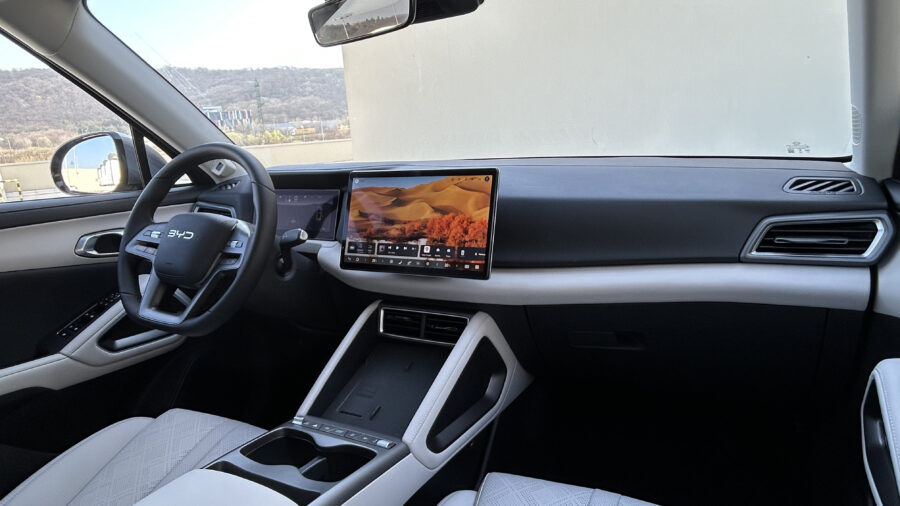 V interiéri vládnu displeje, podobne ako aj v iných čínskych automobiloch. Pred vodičom je 8,8-palcový displej, v strede palubnej dosky 12,8-palcový infotainment. Operačný systém je svižný a prehľadný, čo je výborná správa, pretože fyzických tlačidiel je tu minimum. A submenu? Tých je viac, než by bolo potrebné, na druhej strane veľa vecí môžete ovládať hlasom cez Google asistenta. Vďaka rázvoru 2,6 metra ponúka Atto 2 slušný priestor na zadných sedadlách aj použiteľný kufor. A to aj v plug-in hybridnej verzii.