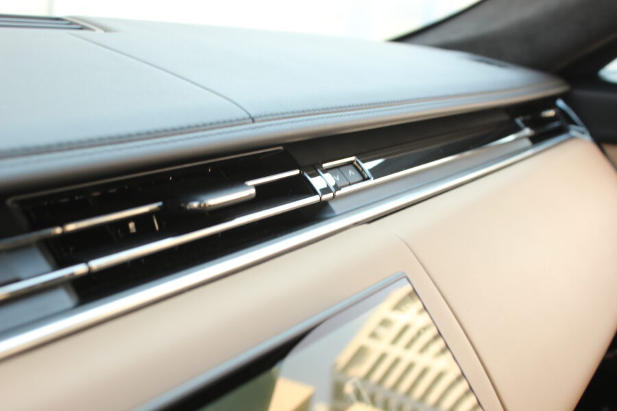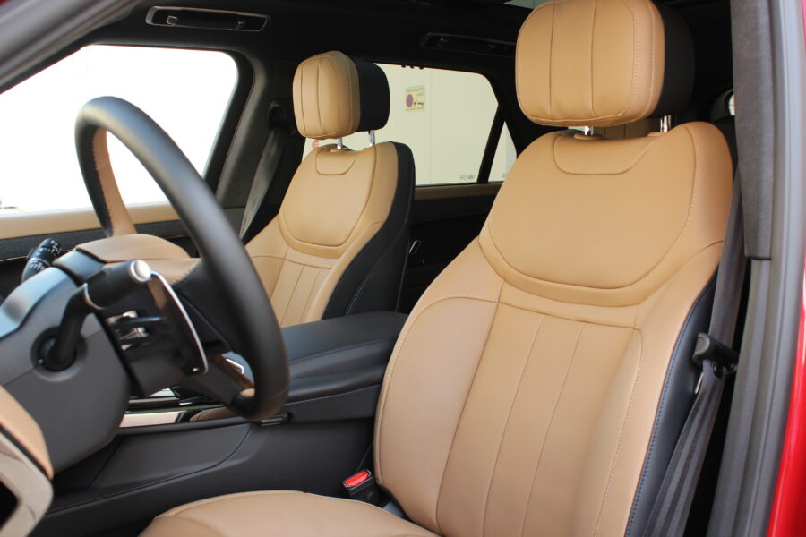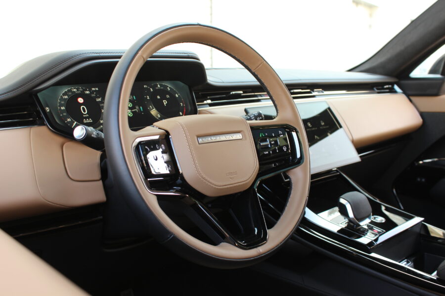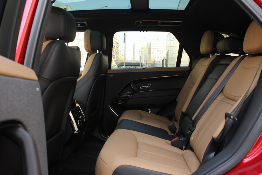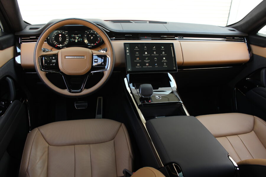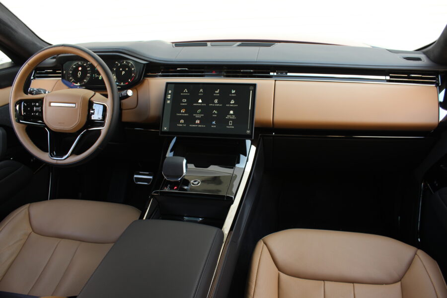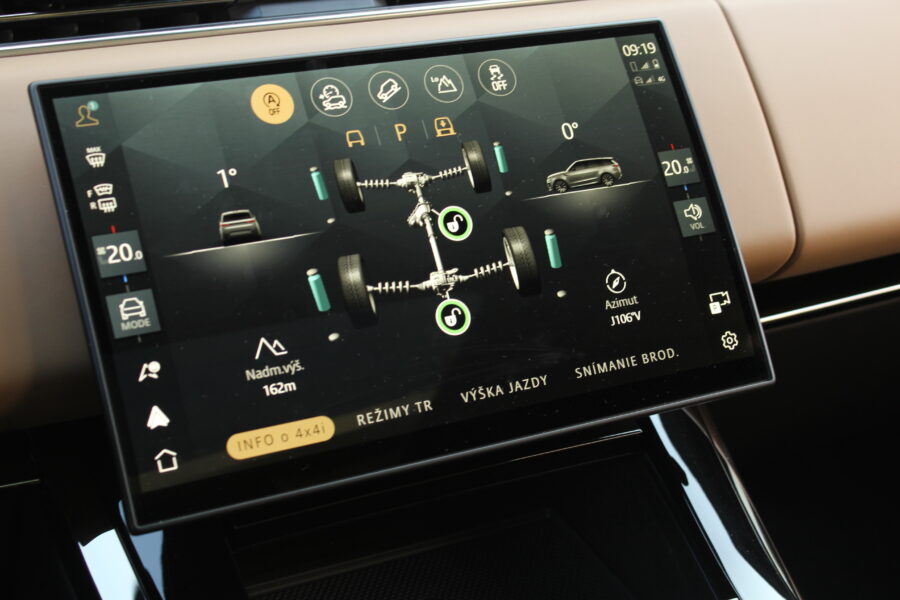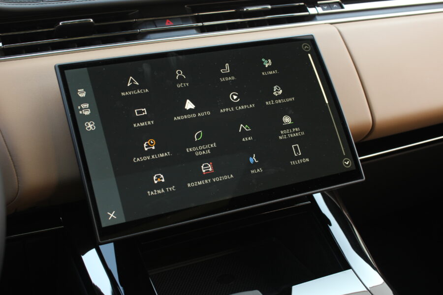 Interiér pokračuje v rovnakom architektonickom štýle. Dominujú mu dva displeje – 13,7- palcový digitálny prístrojový panel a 13,1-palcový infotainment s multimediálnym systémom Pivi Pro. Grafika je pekne čitateľná, rozlíšenie vysoké, reakcie rýchle a menu logické. Minimalizmus však na môj vkus zachádza až príliš ďaleko – otočné ovládače klimatizácie, ktoré Range Rover využíval doteraz, boli skvelé, no po novom musíte všetko hľadať v dotykovom displeji. Dizajnéri zjavne vyhrali nad pragmatickejšími inžiniermi.