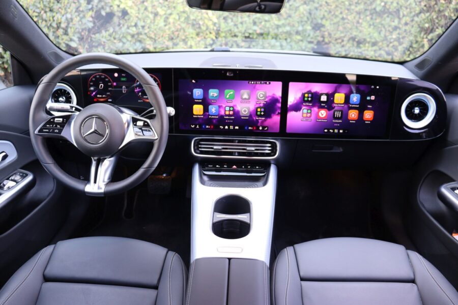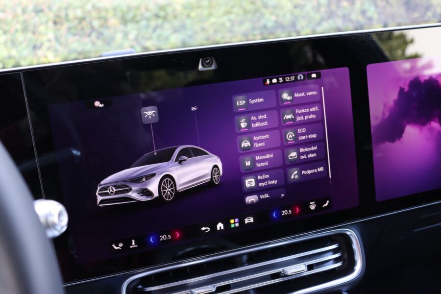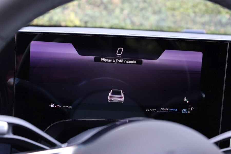 Čo ma po nasadnutí prekvapilo? Spaľovacie CLA po vzore toho elektrického nepotrebuje štartovacie tlačidlo. Jednoducho sa naštartuje zaradením rýchlosti a odstaví sa otvorením dverí, resp. stlačením tlačidla na páčke, ak chcete ešte v aute ostať sedieť.