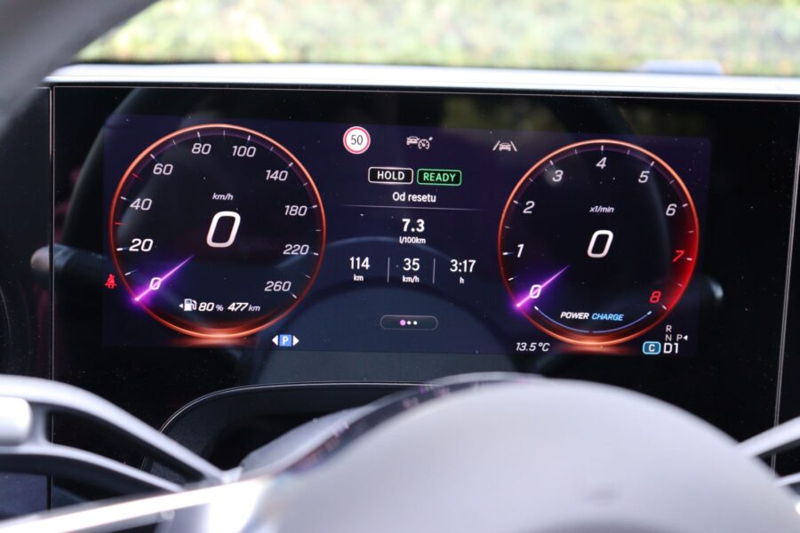 CLA s hybridným pohonom sa v bežnom jazdnom režime z miesta rozbieha na elektrinu. A aj sa po celý čas maximálne snaží jazdiť na elektrinu. To znamená, že spaľovací motor sa často zapína, vypína, a tak to ide hore-dole dokola. Pri plynulej jazde to nevadí, ale ak chcete zrýchliť trochu akčnejšie, elektromotor nestačí, a po pripojení spaľovacieho motora bez pohybu pravej nohy na pedáli auto začne nekoordinovane zrýchľovať, a teda sa treba hrať s pravou nohou. Zároveň sa občas spaľovací motor snaží rýchlo po štarte dostať do otáčok, čo sa prejaví drsným kopnutím. Tento problém by mala vyriešiť aktualizácia softvéru, či to tak bude, ukáže až čas. Každopádne jedno riešenie úplne zadarmo som našiel už teraz. Stačí prepnúť do športového režimu a spaľovací motor ostane v činnosti nonstop a jazda sa tak stane oveľa pohodlnejšia.
