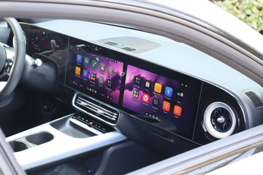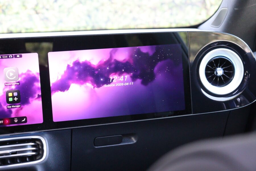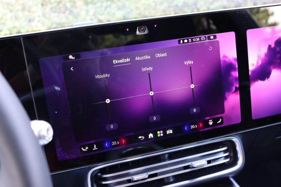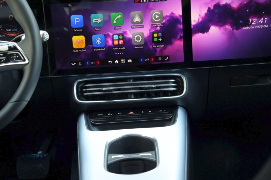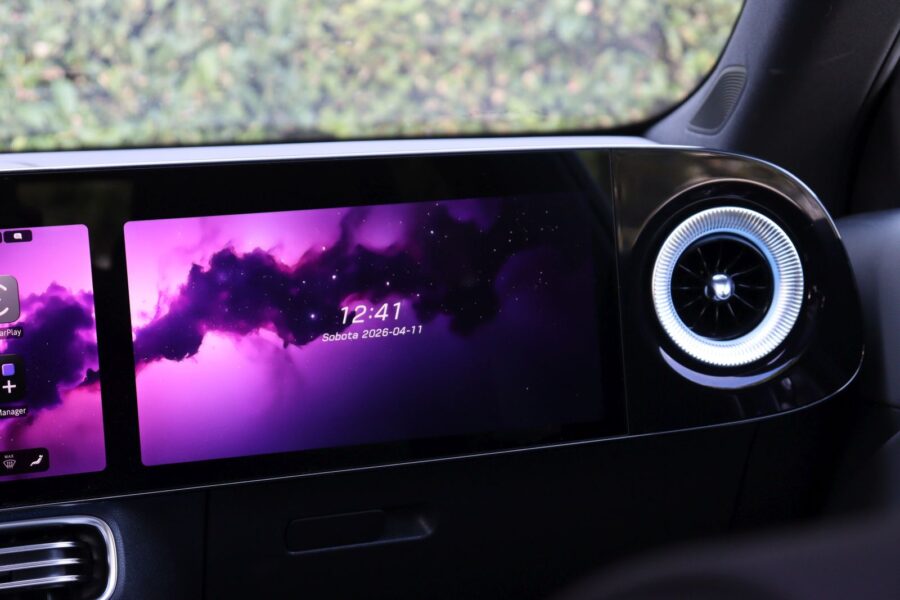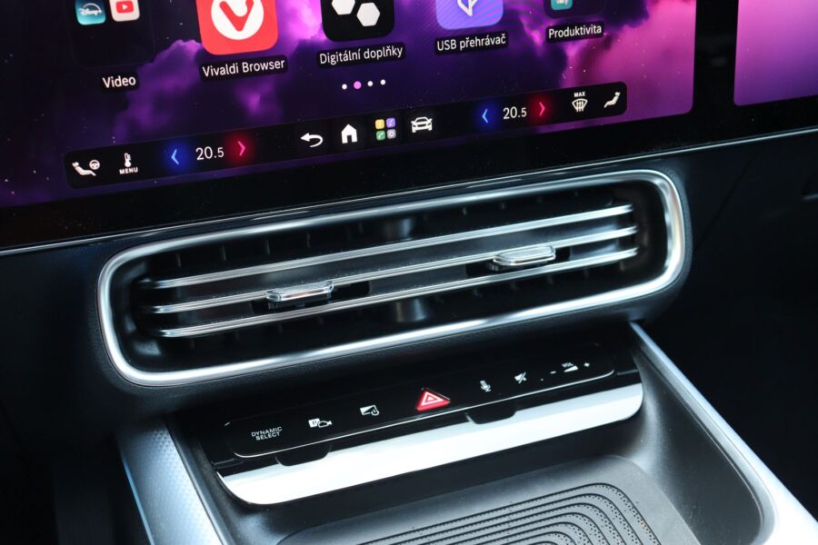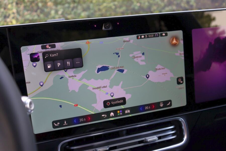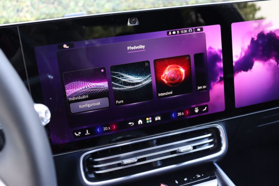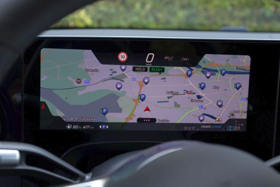 Na moment sa zastavím ešte pri interiéri a tretej obrazovke pred spolujazdcom. Prekvapilo ma, že na ňu z pohľadu vodiča vidím. Vyskúšal som si nočnú jazdu so spolujazdcom, ktorý sa naplno venoval obrazovke pred ním, hral hry a skúšal všetko možné. Priznám sa, rýchlo meniace informácie ma podvedome rušili a ťahali oči od cesty. Niektoré automobilky sa popasovali aj s týmto javom a tretiu obrazovku z pohľadu vodiča nie je vidno.