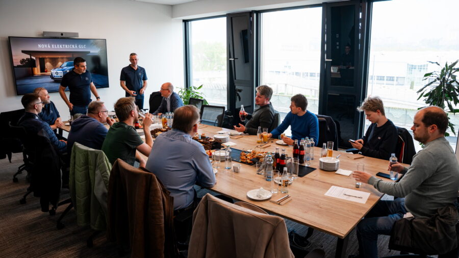 Ráno v Bratislave sa začalo nenápadne – pár známych tvárí z motoristických redakcií, káva v modernej zasadačke a nenútená debata o tom, kam sa elektromobilita v poslednom období posunula. Odpoveď sme mali dostať už o pár minút neskôr, keď sme si prebrali kľúče od úplne nového elektrického Mercedesu GLC.