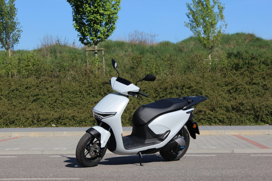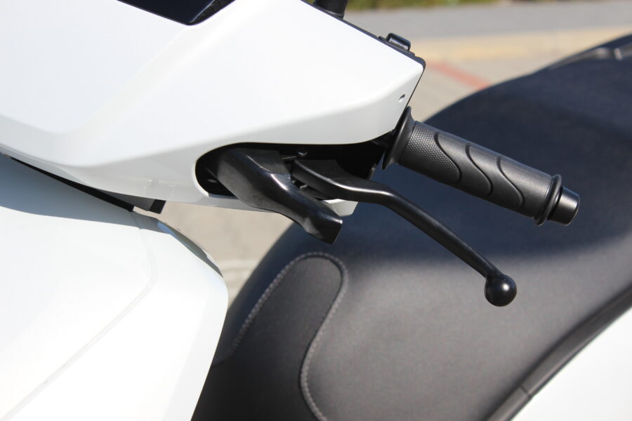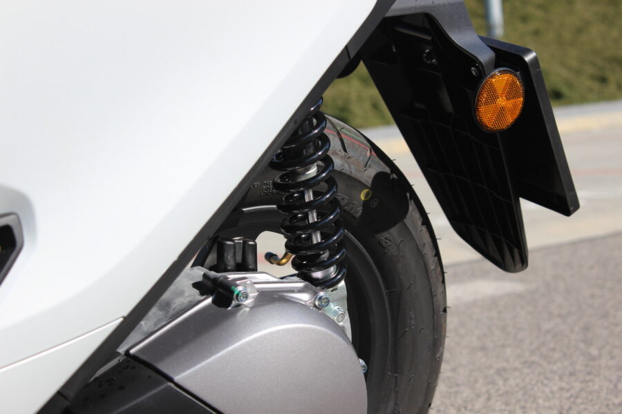 Rozjazdy sú svižné, tiché a plynulé, bez akýchkoľvek vibrácií. V meste to znamená veľmi príjemný pocit kontroly – stačí otočiť plynom a skúter okamžite reaguje. Maximálna rýchlosť 80 km/h jasne naznačuje, že mimo mesta to nebude jeho prirodzené prostredie, ale medzi autami v mestskej džungli mu nič nechýba. Podvozok je o niečo tuhší, čo si všimnete najmä na horších cestách, no na druhej strane skúter pôsobí stabilne a isto.