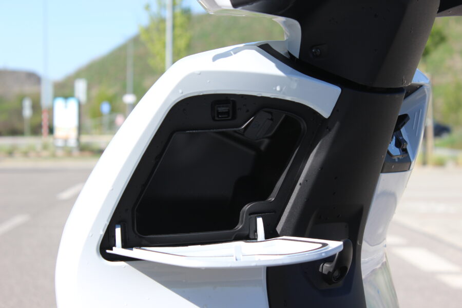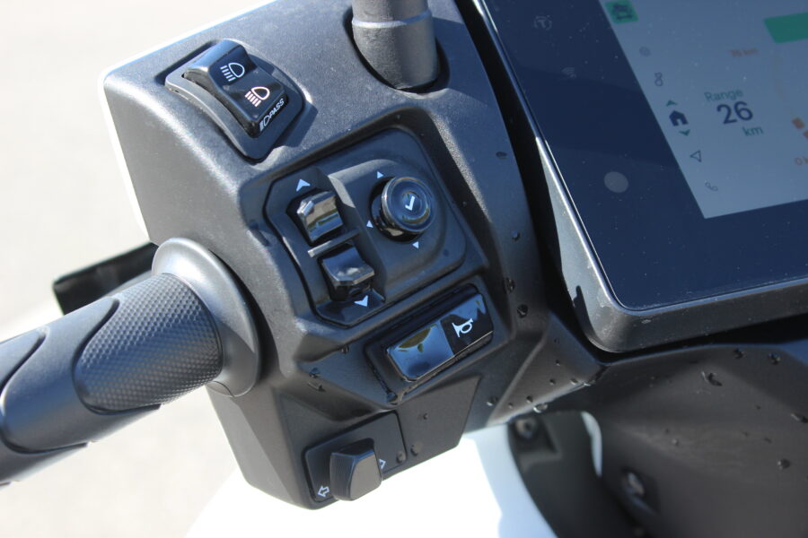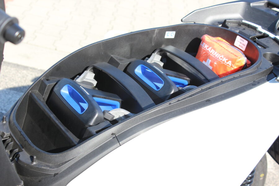 Najväčšiu pozornosť som venoval systému dvoch vyberateľných batérií, pretože práve ten zásadne ovplyvňuje každodenné fungovanie. Po niekoľkých dňoch používania môžem povedať, že ide o riešenie, ktoré má logiku, ale treba si naň zvyknúť. Batérie som si jednoducho vybral zo skútra a odniesol domov, čo je obrovská výhoda, ak nemáte garáž alebo zásuvku pri parkovaní. Na druhej strane, každá má okolo desať kilogramov, takže