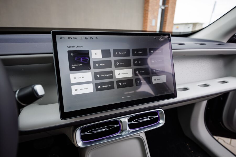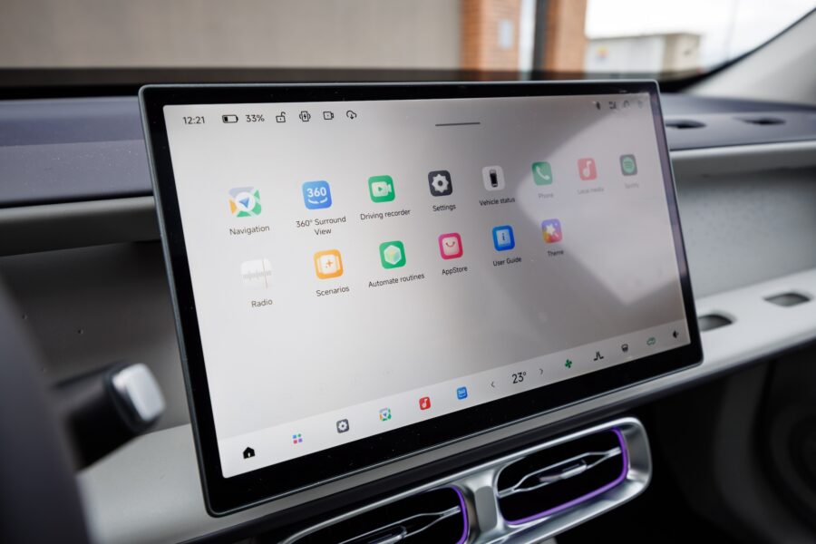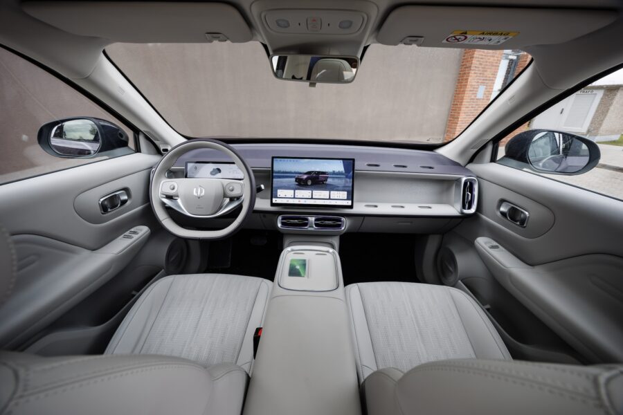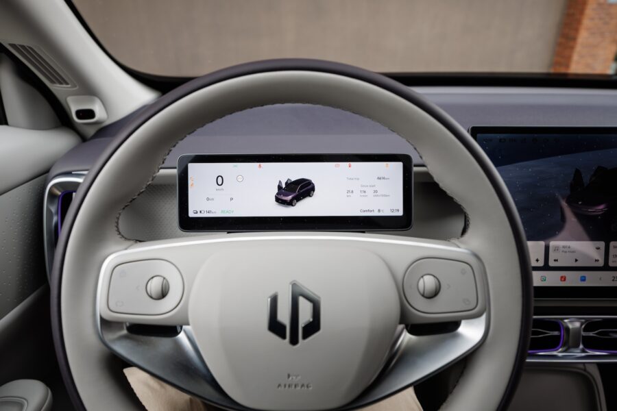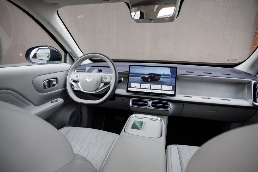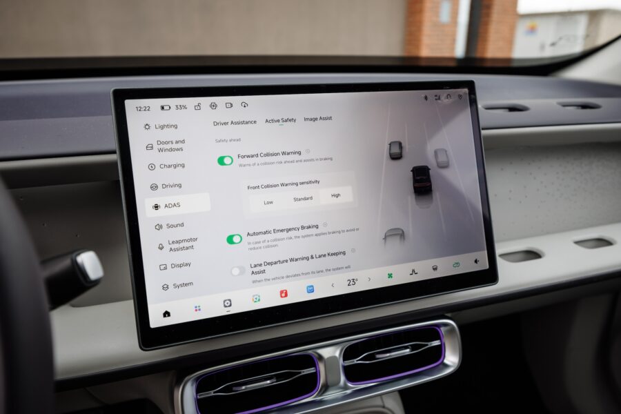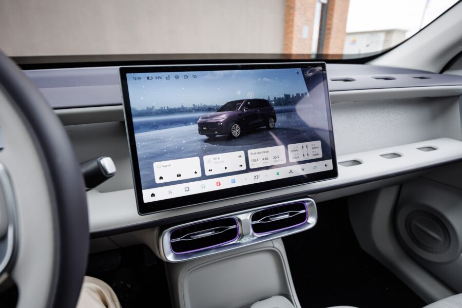 To je recept drvivej väčšiny čínskych áut. Po nastúpení do kabíny je jasné, že Leapmotor je z Číny. Dominuje tu 14,6-palcový centrálny displej doplnený 8,8-palcovým prístrojovým panelom. Väčšina funkcií sa ovláda práve cez dotykový systém. Inak povedané, je to hra triafania malých ikoniek na veľkom displeji a preklikávania smartfónového menu. Tak si musíte deaktivovať jednotlivé položky meistami chaoticky reagujúcich asistenčých systémov v menu alebo si pracne rozklikáte rádiové stanice. Intuitívne ovládanie nečakajte a návod si budete študovať. Základné funkcie zvládnete bez problémov, no ak nie ste IT Guru, nechytí vás tento systém za srdce. Ešte aj nastavenie vonkajších spätných zrkadiel budete ovládať cez konfigurovateľné tlačidlá na volante. Opäť niečo s čím sa stretnete najmä u čínskych výrobcov.