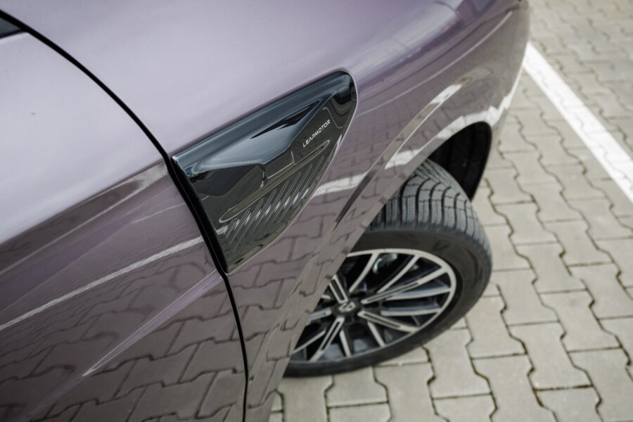 Možno vám dvihne obočie samotný dizajn. Je čistý a v podstate vyvážený až kým sa nepozriete na kolesá. Aj napriek tomu, že majú 18“ pôsobia malé. Pre niekoho detail, pre Európana s estetickým cítením chybička krásy. Najmä ak zvyšok karosérie pripomína Porsche Macan. Dizajn je tak konzervatívny, ale funkčný. Leapmotor B10 si určite nájde fanúšikov, ale v tomto smere sú kórejskí konkurenti oveľa viac vpredu. Rešpektujú európsky vkus, a vedia veci spracovať atraktívne ako napríklad Kia v rámci svojej modelovej ponuky. Na margo karosérie ešte jedna poznámka. Zapustené kľučky. Tento prvok je síce atraktívny, no výsostne nepraktický. Možno je to daň za aerodynamiku, jej prínos sa meria v zlomkoch jedného percenta: Zato nastupovanie dokáže celkom znechutiť, najmä ak niečo ako klasický bezkľúčový prístup B10 nepozná, namiesto toho môžete využiť aplikáciu v telefóne, alebo NFC kľúč, ktorý zakaždým musíte priložiť k čítaciemu miestu na spätnom zrkadle. Možno je to fajn z hľadiska ochrany pred krádežou, po čase vás tento úkon môže otravovať.